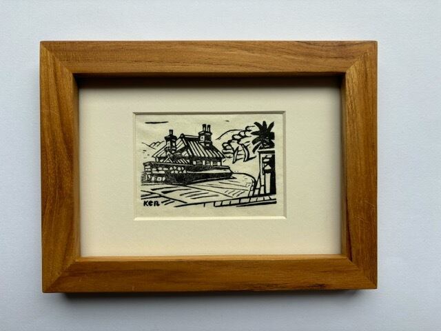 東山手の活水学院前の風景をモチーフに描かれた、小さな版画作品です。